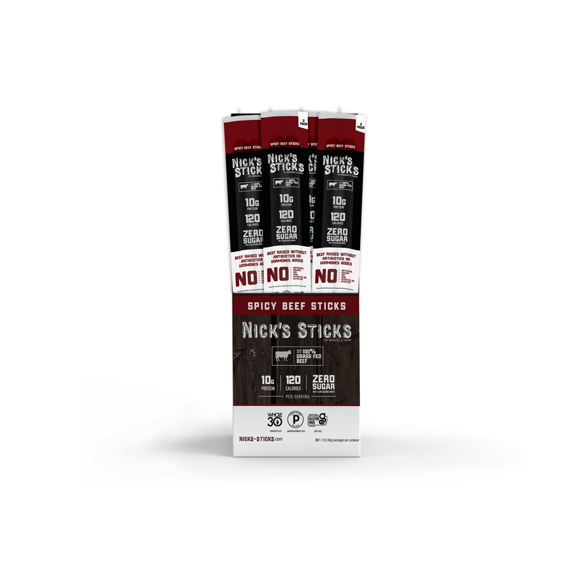 Want to kick your healthy eating into high gear? The Spicy Beef Stick has the kick you are looking for. Our spicy beef stick has all of the benefits and yumminess of our beef sticks, plus a little heat! This hot little number is perfectly packaged to go out on the town in your gym bag or lunch box. Seasoned with jalapeño peppers, it’s a flavorful, clean protein, dye-free, nitrate-free, hormone-free, sugar-free (not a low-calorie food), antibiotic-free snack.