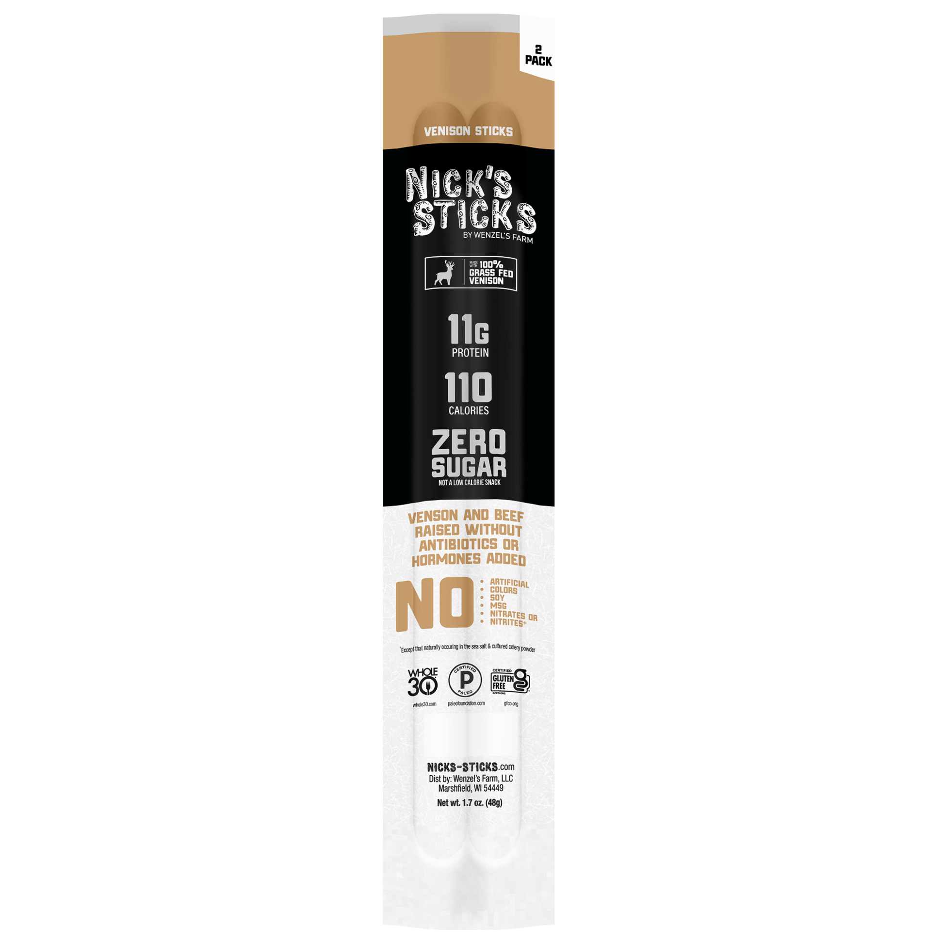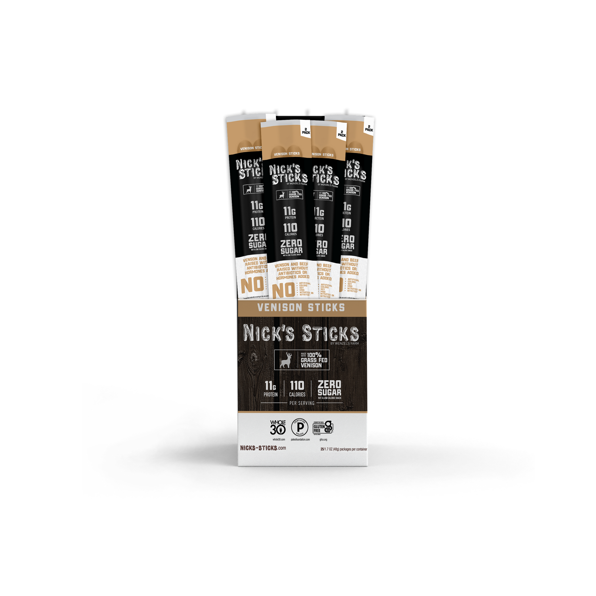 The Grass-Fed Venison Sticks feature meat from grass-fed deer, and like all Nick’s Sticks, there are no artificial colors and no sugar. They are Paleo, Whole30, Keto approved, and gluten-free certified. Nick’s Sticks Grass-Fed Venison snack sticks are an excellent protein option with a great flavor. The Grass-Fed Venison snack sticks is a very natural, healthy, protein-rich snack with an excellent flavor, and perfect for the person who needs to grab a quick snack when on the go.